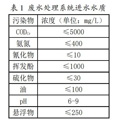 剖析酚氰废水的水量与水质,需求分离焦化厂实践生产制造状况实行剖析。以某焦化厂为例,该厂6m焦炉产焦量为150t/h,每吨焦废水的产生量在0.3t~0.4t之间,正常流量范围是42m3/h~56m3/h。由于该焦化厂在生产制造中主要采用煤气横管初冷技术与干熄焦工艺,生成的剩余氨水进入到蒸氨与粗苯蒸馏工段,分别运用别离器与油槽别离水输入到机械化氨水的廓清槽中,期间运用清洁生产制造技术将废水流量控制在30m3/h~40m3/h之间,废水处置系统的进水水质数据见表1。