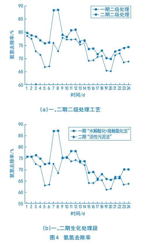3.3 二级处置工艺对废水中氨氮的去除效果