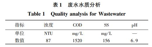 实验废水来自洗米工段产生的废水,其主要水质指标如表1所示。其中废水中的COD主要来源于淀粉成分。