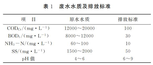 该酒厂以高粱为主要原料,在生产过程中不参加任何有毒有害难降解的物质,因而废水中主要是粮食作物酿酒后的残留物。按每生产1t白酒产生4~5m3废水计,高浓度锅底水、窖池黄水COD高达60000mg/L以上,泡粮水水质浓度较低,COD浓度约6000~8000mg/L。本工程设计处置水量为20m3/d。设计进水水质见表1。