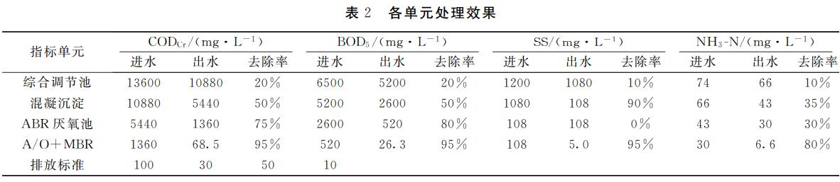 经过3个月的调试运转,整个系统运转效果稳定,并且出水水质优于«发酵酒精和白酒工业水污染物排放规范»(GB27631-2011)中表2新建企业水污染物直排限值。各单元处置效果见表2。