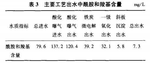 (2)可用污水中的带有酰胺基类和羧基类物质含量对各工艺段降解效率实施表征,其中超声微电解单元可显著毁坏酰胺基物质的分子构造,将酰胺类物质合成为小分子物质,为后续的一级氧化单元发明良好的条件。经两级化学氧化处置后,酰胺类物质大局部被去除。