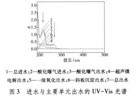 为考证官能团滴定剖析结果,采用UV-Vis光谱对各单元出水水质实施剖析,如图3所示。
